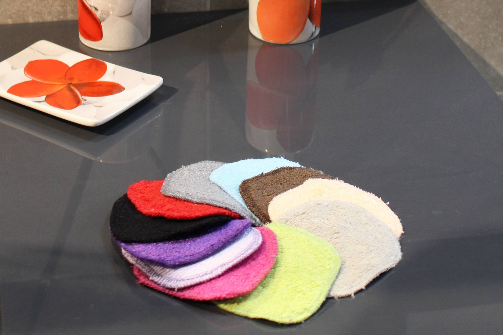 Carrés démaquillants en Bambou par lot de 5, pour un démaquillage doux, économique et écologique du visage, des yeux et des ongles. Ces carrés démaquillants sont lavables !